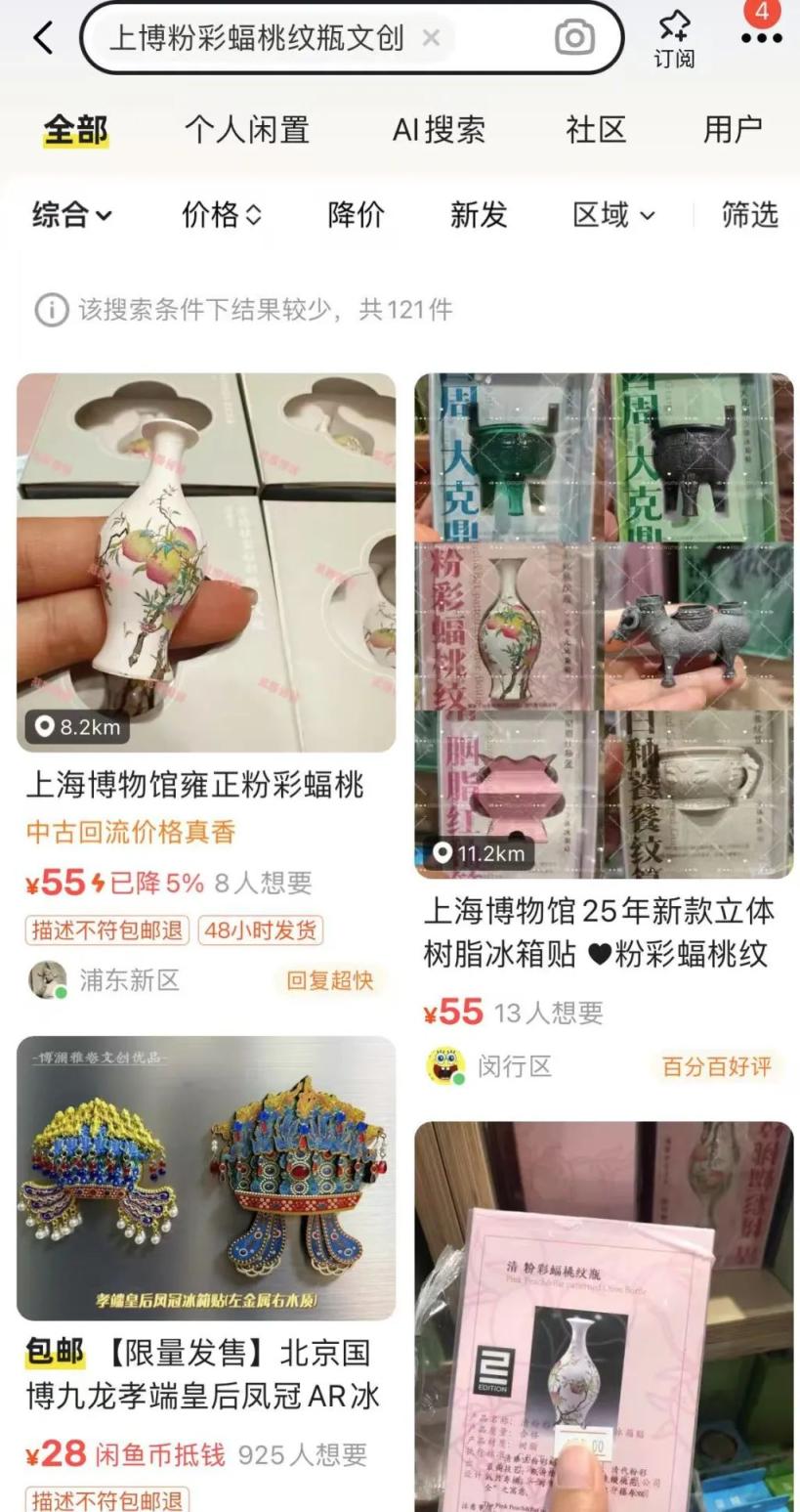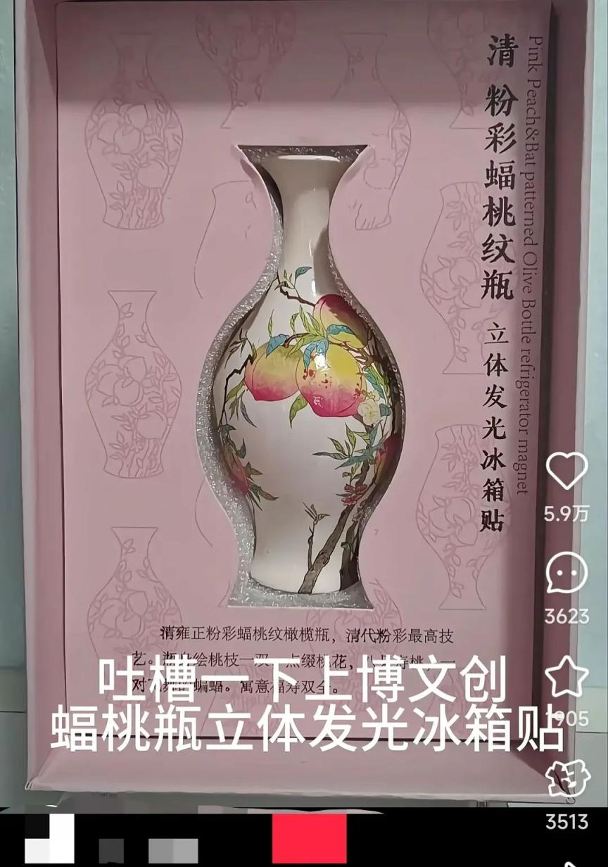 上海博物馆一款“蝠桃瓶”文创冰箱贴近日引发争议。